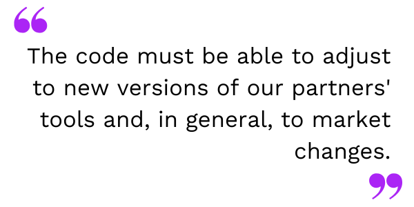 This requires a great deal of thought before and during the development of our technologies. The code must be able to adjust to new versions of our partners’ tools and, in general, to market changes.