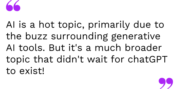 AI is a hot topic, primarily due to the buzz surrounding generative AI tools. But it’s a much broader topic that didn’t wait for chatGPT to exist!