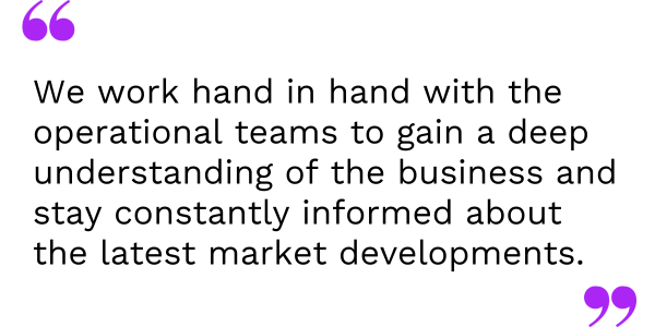 Internally, we work hand in hand with the operational teams to gain a deep understanding of the business and stay constantly informed about the latest market developments.