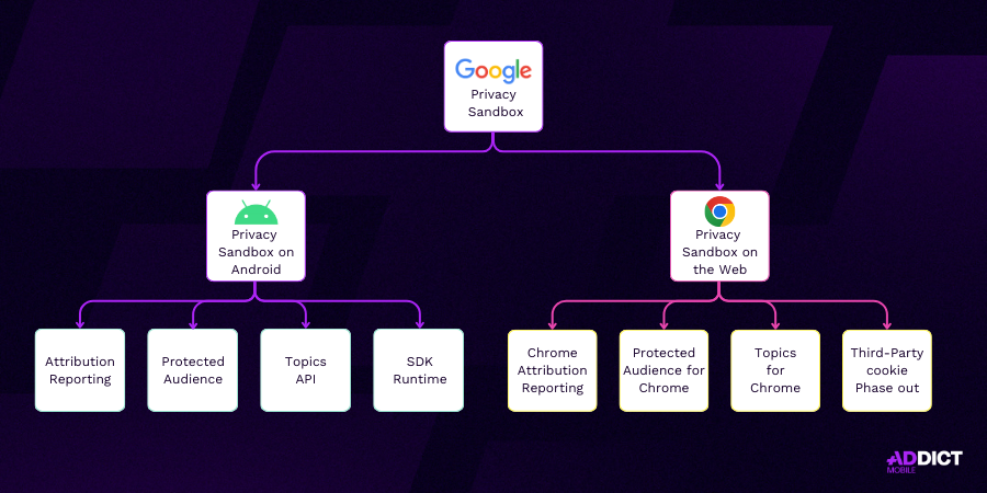 Le Privacy Sandbox pour le Web cible principalement les cookies tiers et les systèmes de suivi basés sur le navigateur. En revanche, le Privacy Sandbox pour Android se concentre sur les identifiants publicitaires comme l’IDFA.