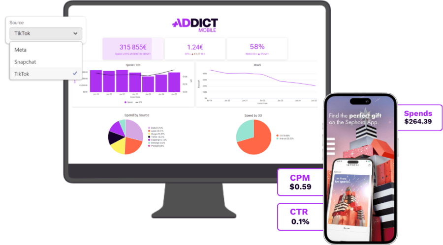 Addict Mobile a développé une technologie créative permettant de produire des visuels à grande échelle pour faciliter vos stratégies d’A/B Test.